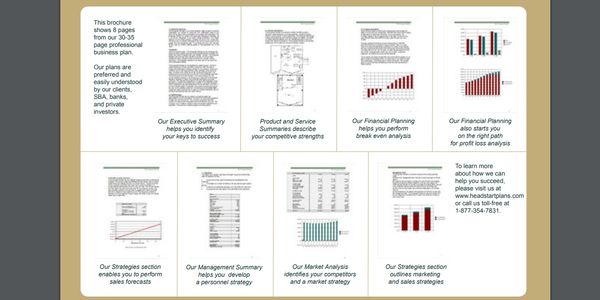 At Head Start Business Plans, we provide business plans that have all the essential elements required by the SBA and all major funding institutions such as banks, private investors, Immigration lawyers/institutions and credit unions. Our plans are 100% suitable for: